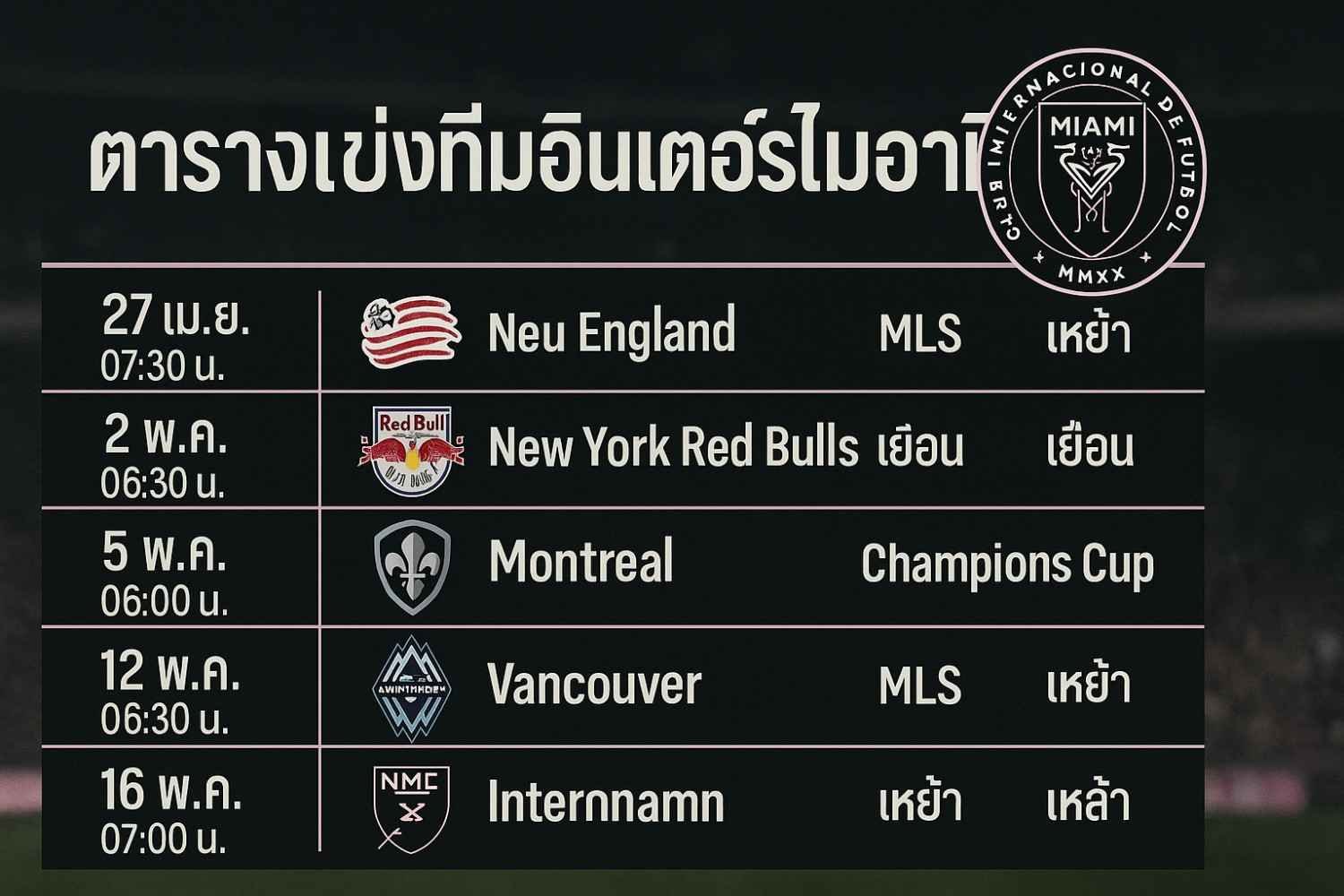 สรุป: ตารางแข่งทีมอินเตอร์ ไมอามี 2025 (อ่านง่าย ได้ข้อมูลครบ)