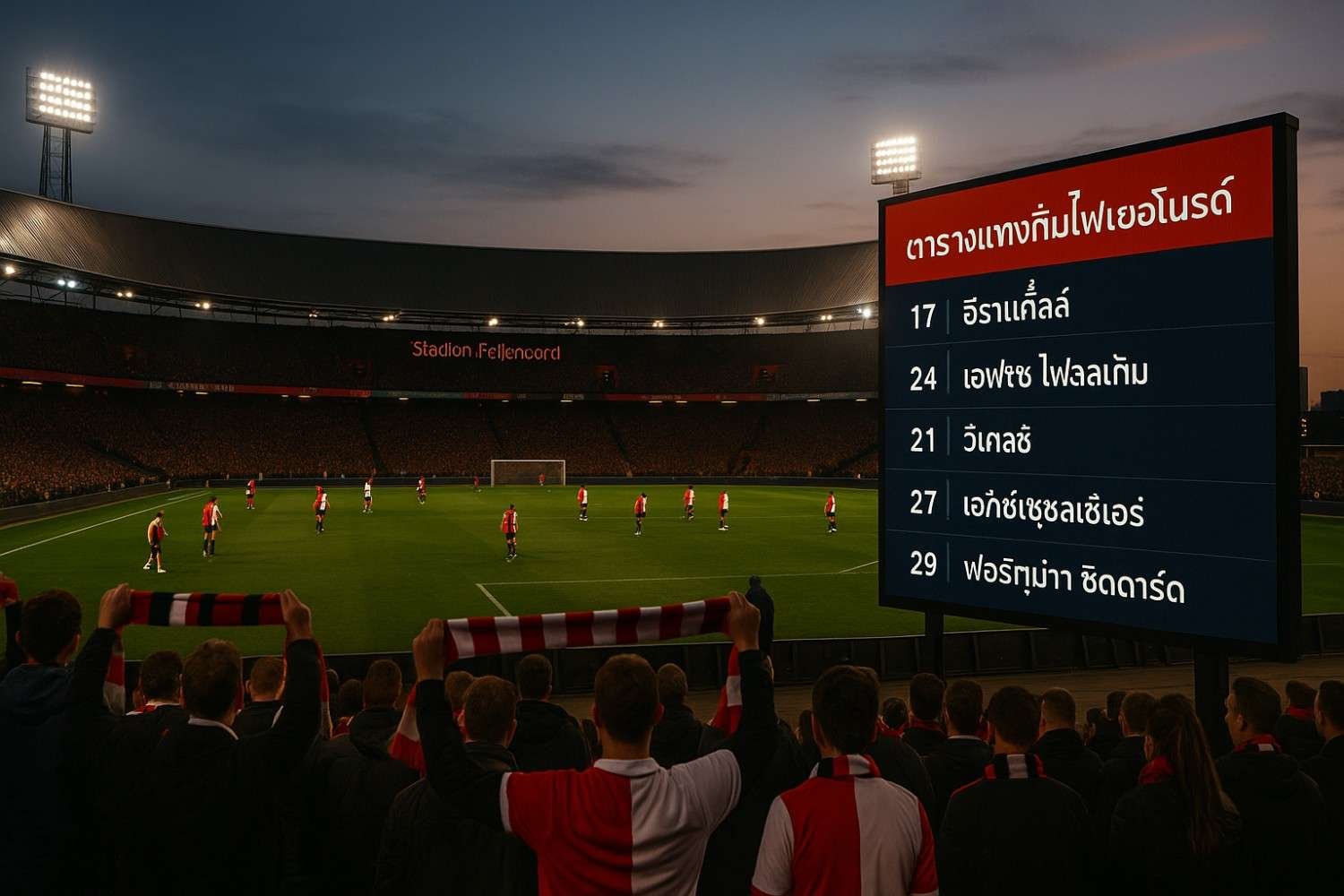 อย่าลืมเช็ก “ผลเหย้า–เยือน” แยกกัน เพราะไฟเยอโนร์ดเล่นในเดอ ไคป์ มักได้พลังแฟนบอลหนุน แต่เกมเยือนบางสนามมีบรรยากาศกดดัน และสภาพสนามต่างกันเล็กน้อย ข้อมูลอันดับตารางล่าสุดยังช่วยคาดโทนเกม เช่น ทีมหนีตกชั้นจะบู๊หนักเป็นพิเศษ